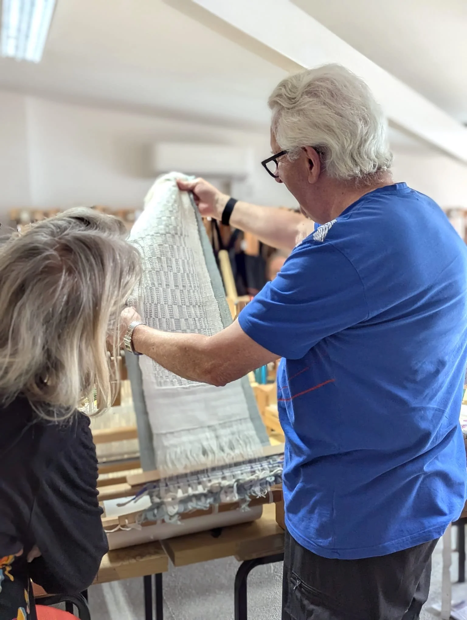 Showcased here is the journey of learning, experimenting, and discovery at the loom. It’s not just about a finished piece but the story it tells about the skills developed along the way, a reminder of the time spent at the loom working with our hands. It’s amazing how a simple end of yarn can be transformed into something beautiful through practice and exploration.